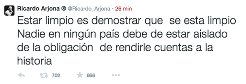 Con un tuit claro y directo, Ricardo Arjona expresó su sentir acerca de la manifestación pacífica que vive el país este 16 de mayo de 2015.