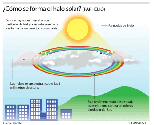 Los halos solares son formados en la atmósfera y se crean debido a que hay demasiado aire caliente.