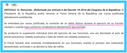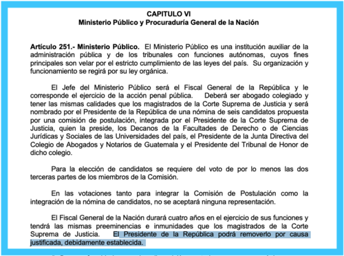 Aunque el Presidente electo se negó a decir de manera contundente si buscará la remoción de Porras, es el mandatario el único con el poder para hacerlo, según lo establece el artículo 251 de la Constitución Política de la República, siempre que haya una "causa justificada establecida".