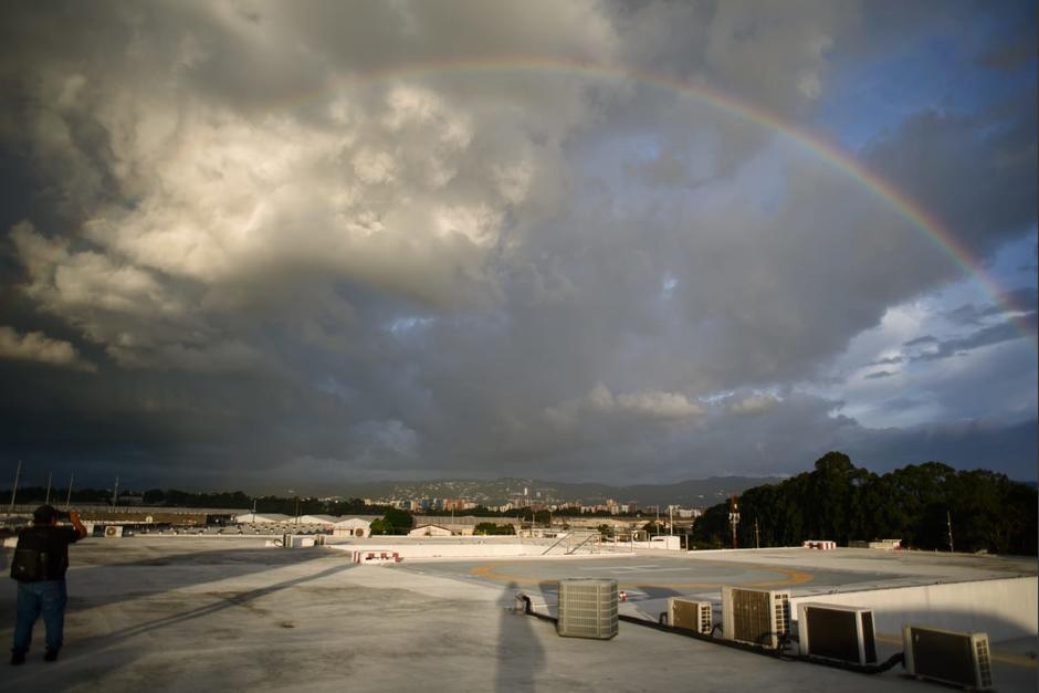 Debido a las condiciones climáticas del país, en algunas zonas de la Ciudad de Guatemala y municipios aledaños se presentan fuertes lluvias, mientras en otros se pudo apreciar el arcoíris.