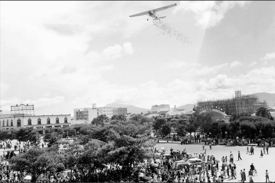 En una de las fotografías se observa a una avioneta sobrevolar el Parque Central para lanzar panfletos. El lugar está abarrotado de personas y, según narra la escritora, se realizó semanas antes al Golpe de Estado, cuando la CIA voló aviones a baja altura sobre la ciudad para "infundir miedo y provocar el caos", lanzando "propaganda anticomunista".