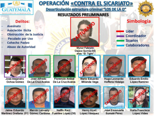 Los capturados fueron Oajaca, José Ochoa Gómez, Florencio de la Cruz Ávalos, José de la Cruz Ávalos, Nelfin Fuentes López, Mario Miranda Vega, Karla López Vides, Eduardo Morales Ramírez, José Sumale Pérez y Abigail López Hernández.
