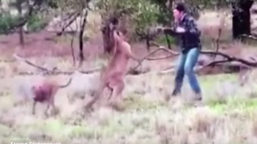 Un inusual episodio tuvo lugar en el patio trasero de una residencia de Queensland, Australia, en donde dos canguros peleaban acalorados.