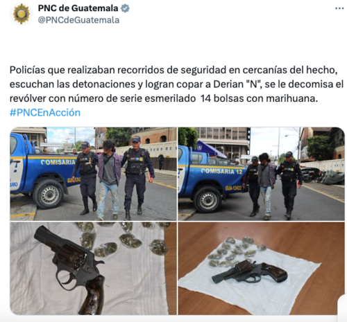 Se le acusa de haber "atacado a balazos a su papá, un hombre de 55 años, el pasado 9 de abril en Nueva Concepción, Escuintla", reza el parte policial, y añade que la víctima sobrevivió al ataque, aunque resultó con varias heridas.
