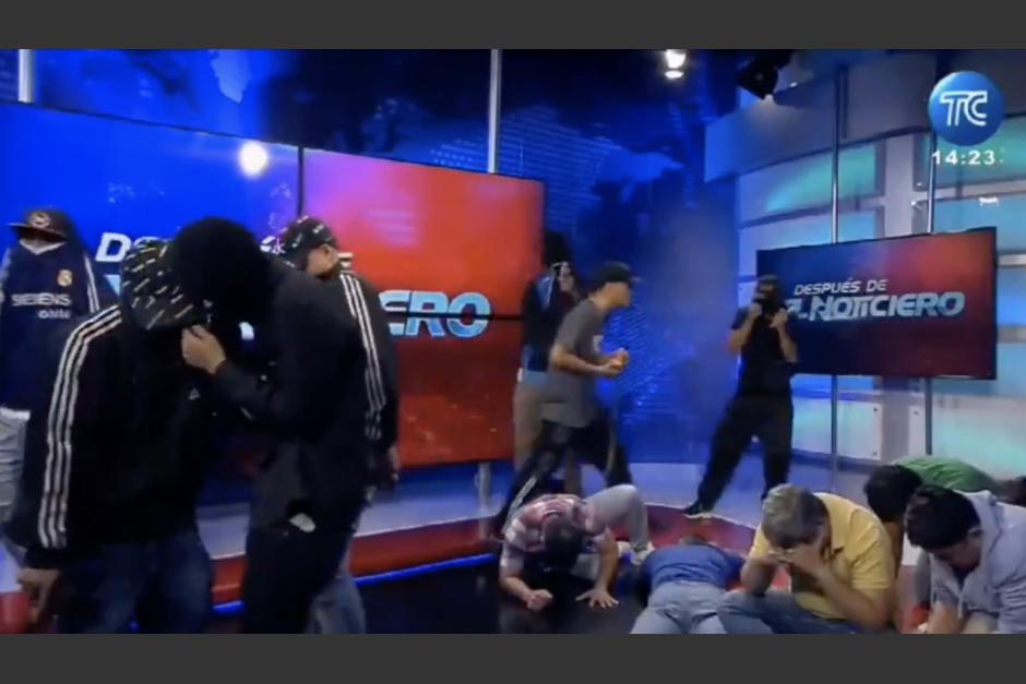 Los hombres que ingresaron fuertemente armados a un canal de televisión en Ecuador y secuestraron a los empleados.