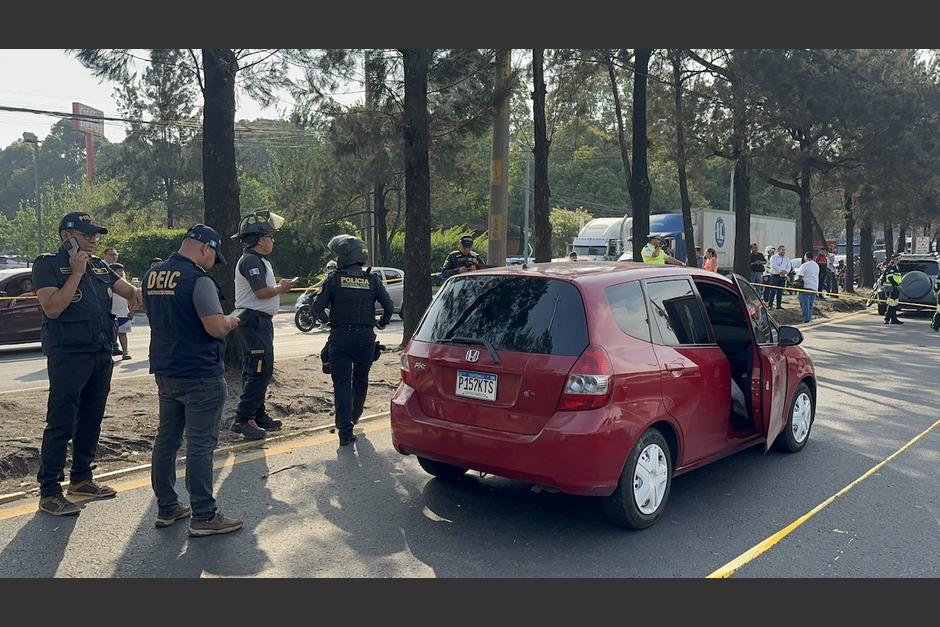 La balacera se produjo cuando el vehículo de color rojo con placas P-157KTS circulaba por el Anillo Periférico y 25 avenida de la zona 11 capitalina, la tarde de este 14 de mayo.
