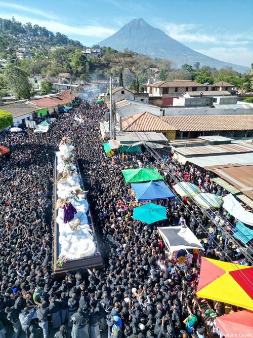 A través de redes sociales, Radio Estrella compartió una fotografía aérea captada por Nelson Cayax que muestra un gran número de cargadores y feligreses que estuvieron al pie del templo para recibir y agradecer al Señor Sepultado un año más de recorrido.
