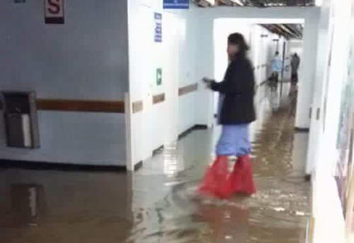 A causa de un colapso del sistema de drenajes generado por las fuertes lluvias que se registraron este 20 de julio en la ciudad de Guatemala, el sótano del hospital Roosevelt se inundó.