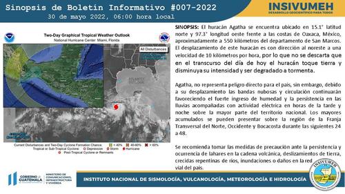 En tanto, el Instituto Nacional de Sismología, Vulcanología, Meteorología e Hidrología (Insivumeh), reportó que actualmente se ubica a unos 550 kilómetros del departamento de San Marcos.