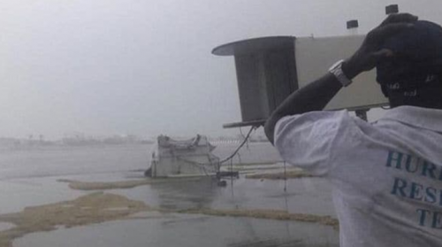 Además, rocas enormes se estrellaron contra aviones y pasarelas de embarque que se derrumbaron por el aguacero y el viento. El salón de check-in del aeropuerto quedó inundado y los pasillos en pésimas condiciones.