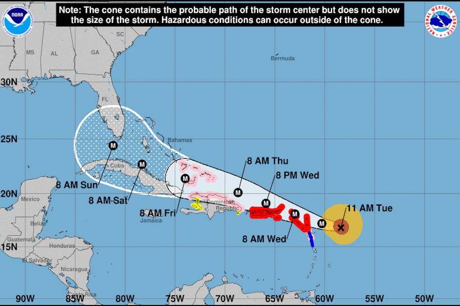 Según el NHC, con sede en Miami, los preparativos para el arribo del fenómeno "deben acelerarse y completarse rápidamente en la zona de advertencia".
