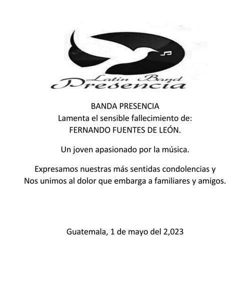 También Latin Band Presencia envió sus condolencias y recordó a Fuentes de León como un joven apasionado por la música.