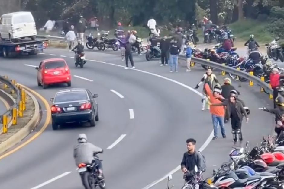 Las imágenes revelan que después del percance vial, los motoristas que se encontraban en el Mirador de San Lucas corrieron para saber lo ocurrido.