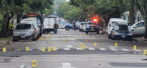 La escena del crimen permanece bajo el resguardo del Ministerio Público (MP), donde peritos continúan procesando el área. Hasta el momento, dos de los cuerpos aún se encuentran en la vía pública, frente a la funeraria donde se registró el ataque.