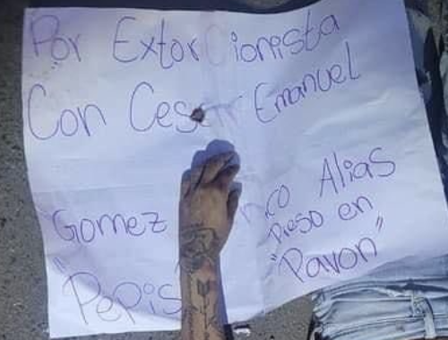 En este se leía: "Por extorsionista con César Emanuel Gómez, alias 'Pepis', preso en Pavón", escrito en una cartulina blanca.