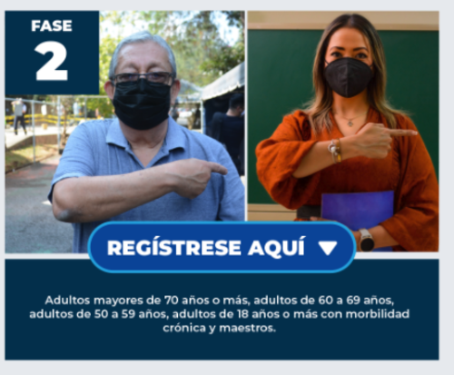 Luego deberán situarse en la sección “FASE 2”, donde se desplegarán las opciones de registro que deberá llenar para estar en la lista de candidatos a la primera dosis de la vacuna.