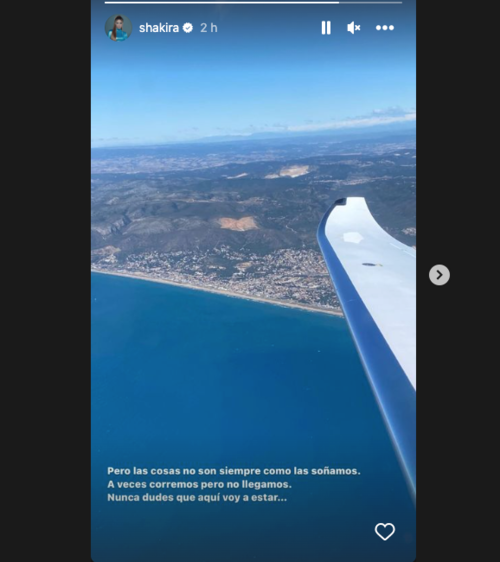 Fue por medio de una historia en Instagram que la cantante colombiana compartió una foto desde el avión con rumbo a Miami, ciudad en donde comenzará una nueva vida al lado de sus hijos Milan y Sasha, y de sus padres.