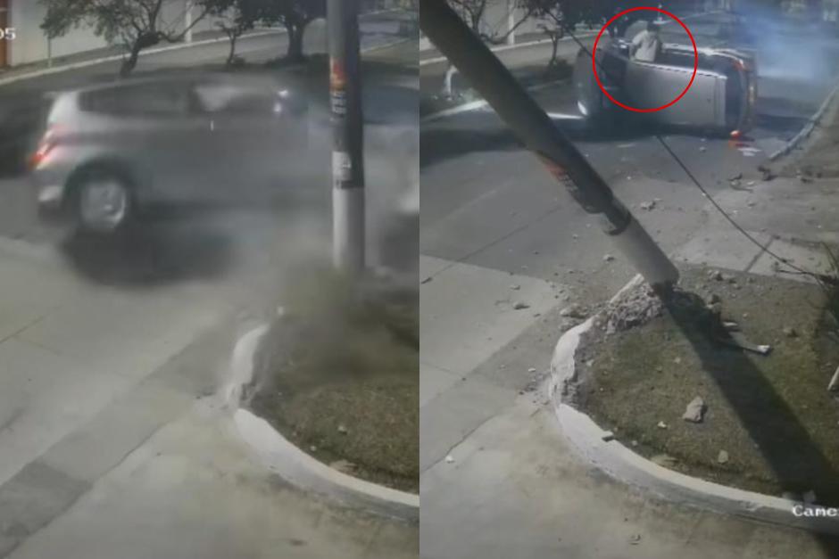 Una cámara de seguridad captó el momento cuando un vehículo tipo camioneta choca contra un poste por el bulevar las Colinas en San Cristóbal.