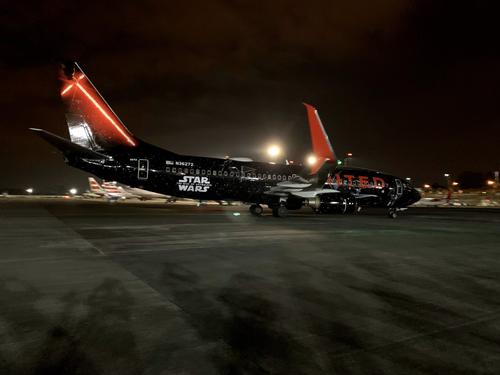 El avión hizo su primer vuelo a principios de este mes, de Houston a Orlando, Florida. Aunque había un montón de malvadas tropas de asalto de Primera Orden a mano, afortunadamente, nadie fue llevado para ser interrogado por Kylo Ren.