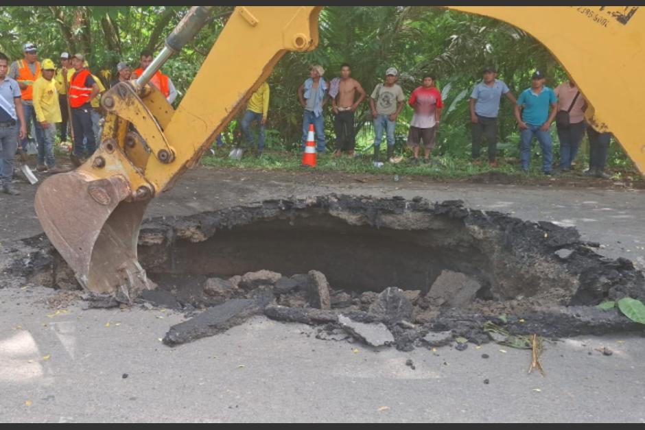 EN CONTEXTO: Auto se hunde en socavamiento de gran magnitud camino a Petén (video)