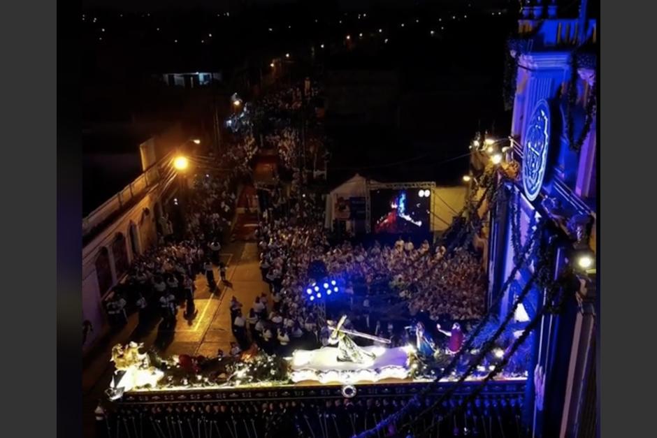 En uno de los videos se observa también a las decenas de cucuruchos que acompañan el cortejo procesional durante su recorrido.