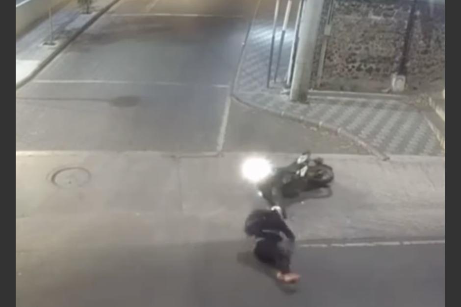 Las imágenes han sido captadas por las cámaras de seguridad de Ciudad Vieja, Sacatepéquez y fueron compartidas por la Policía Municipal de Tránsito (PMT) de esa localidad.