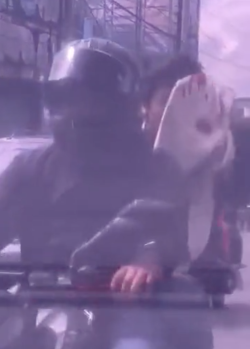 "Lo balearon", se escucha en el material audiovisual. Mientras los tripulantes de la motocicleta se retiran del lugar, pero el acompañante lleva una prenda manchada de sangre.