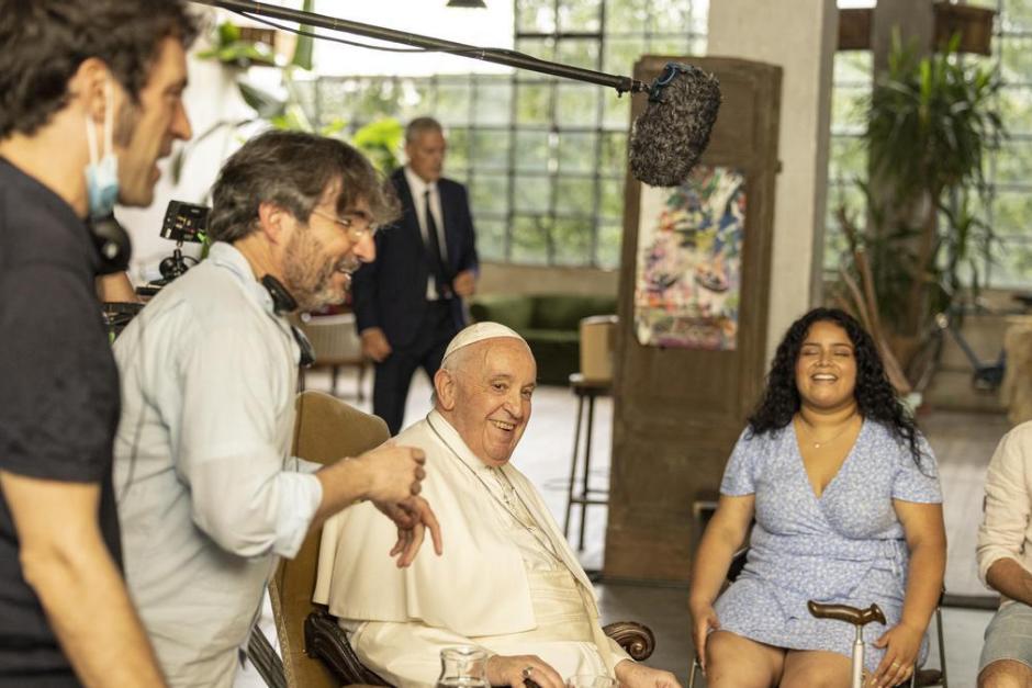 Para evitar la solemnidad y el protocolo, se decidió filmar el documental en un edificio de coworking en el centro de Roma, en lugar del Vaticano.
