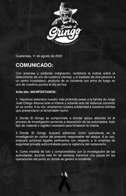 La discusión que terminó en un crimen en un centro bar ubicado en un centro comercial en la zona 11 capitalina, durante la noche del jueves 11 de agosto, ha causado conmoción en Guatemala.