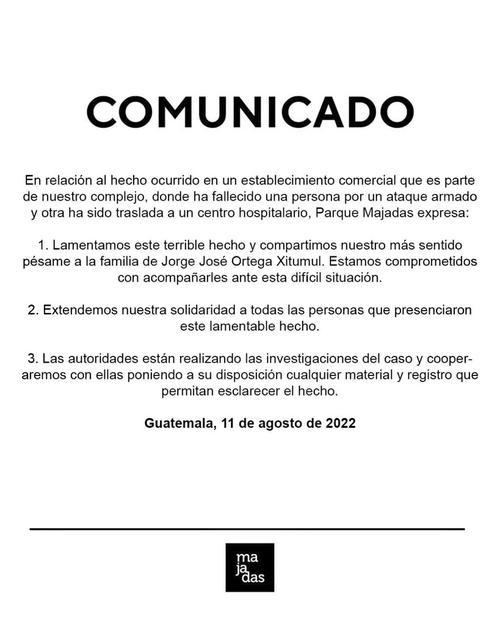 Momentos más tarde, el bar donde se originó el suceso, así como el centro comercial en donde está situado, emitieron sus comunicados respectivos, en los cuales lamentan lo sucedido y además se ponen a disposición de las autoridades para la investigación correspondiente.