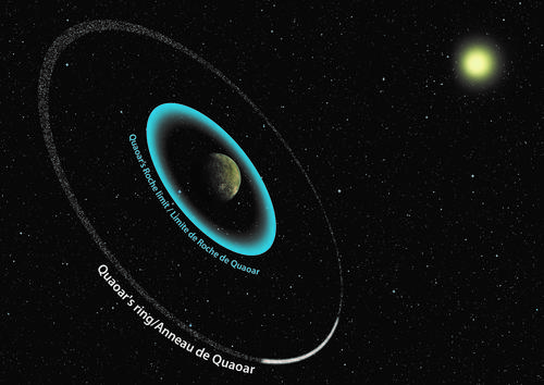 El anillo de Quaoar se ubica fuera del Límite de Roche, el cual se refiere a la distancia de cualquier cuerpo celeste que posea un campo gravitatorio apreciable, en el que un objeto que se acerque sería arrastrado.