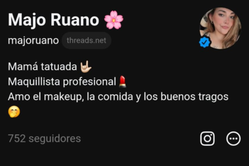 Actualmente, los perfiles de Majo Ruano son privados, pero hasta ahora cuenta con 27 mil seguidores en Instagram y poco más de 8 mil en TikTok. En sus redes sociales, se describe como: "Mamá tatuada. Maquillista profesional, amo el makeup, la comida y los buenos tragos".