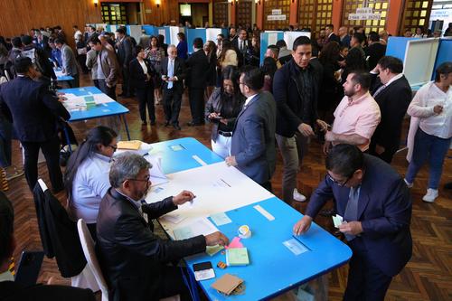 Agremiados al Colegio de Abogados y Notarios están llegando al Club La Aurora, zona 13 capitalina, para emitir su voto y elegir a sus representantes de la Junta Directiva y Tribunal de Honor.