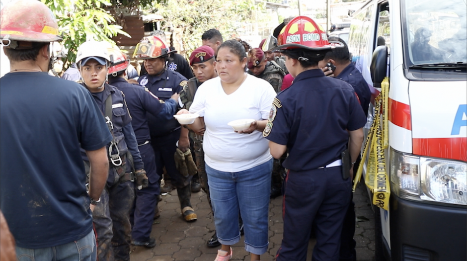 A las vecinas se les observó ofreciendo comida a miembros del ejército, rescatistas de la Coordinadora Nacional para la Reducción de Desastres (Conred), bomberos y periodistas.