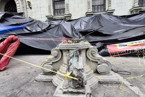 Luego del retiro voluntario del plantón que durante más de dos meses mantuvieron los docentes afiliados al Sindicato de Trabajadores de la Educación de Guatemala (STEG), personal del Ministerio de Cultura y Deportes realizó una inspección en la Plaza de la Constitución y en la fuente central, ubicada en el corazón del Centro Histórico.