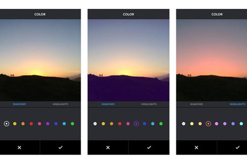 Por su parte, la herramienta Color cambia la tonalidad de las luces y sombras que tenga la fotografía y le da al usuario la opción de elegir entre amarillo, naranja, rojo, rosado, morado, azul, cyan y verde.