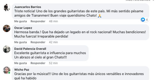 "Aplausos eternos chato, que orgullo y honor haber tenido la oportunidad y bendición de estar a tu lado y aprender música, te lo agradece toda la familia Tiananmen que nos acompañó por más de 30 años: Juan Carlos y Tula", cerraroon.