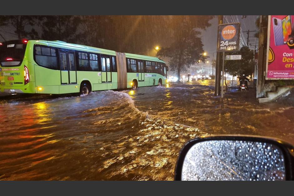 Imágenes captadas en la calzada Atansio Tzul muestran que varios conductores están varados debido a las inundaciones.
