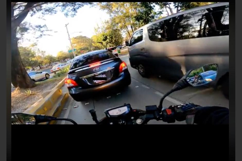 Una grabación evidenció la inusual reacción que tuvo un motorista en el tránsito de la Ciudad de Guatemala.