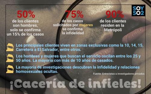 Uno de los entrevistados, dueño de Investigador Privado Guatemala, contó que prácticamente se ha convertido en un "asesor de infidelidades", pues el 100% de sus casos están relacionados con personas que quieren vigilar a sus parejas.
