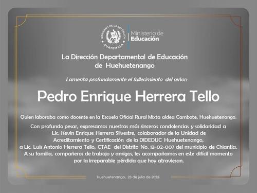 La muerte del maestro Pedro Enrique Herrera Tello, de 72 años, ha generado consternación en la aldea Cambote, Huehuetenango, luego de ser atacado con arma blanca en una escuela de la localidad.