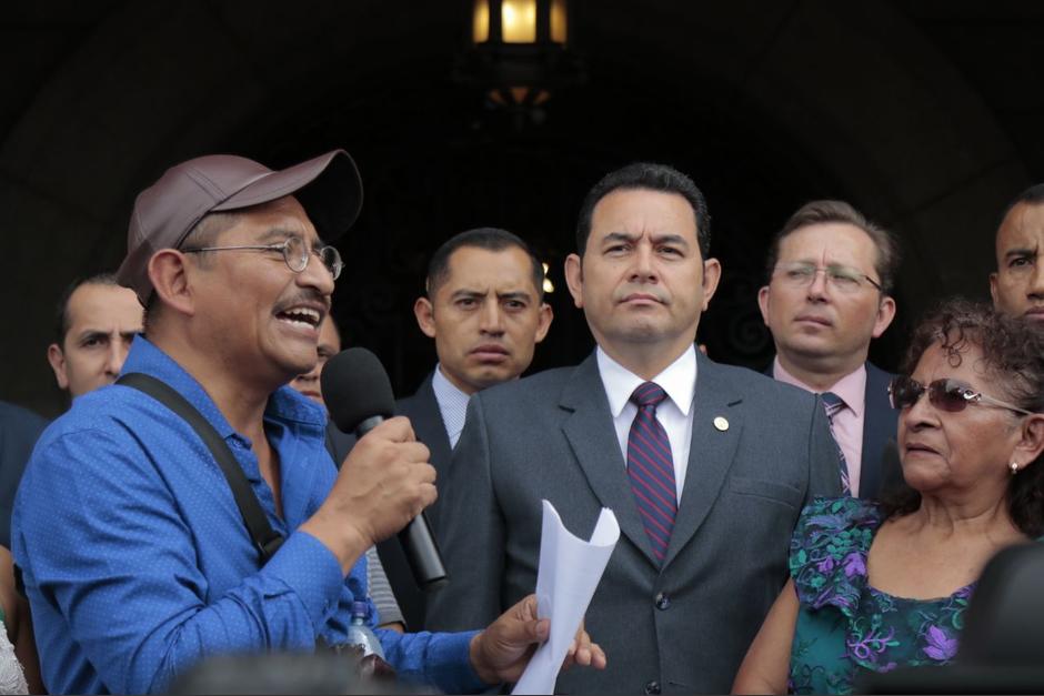 El presidente Jimmy Morales salió a recibir, acuerpado por gran parte de su Gabinete, y brindó un discurso a los vendedores de mercados de la ciudad de Guatemala que manifestaron este miércoles.