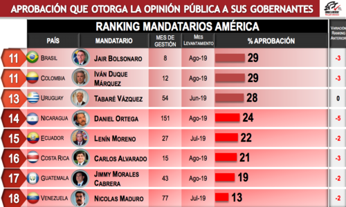 Consulta Mitofsky posiciona a Jimmy Morales en el grupo de "evaluación muy baja", en el que también aparece: Daniel Ortega, de Nicaragua; Lenín Moreno, de Ecuador; y Carlos Alvarado, de Costa Rica.