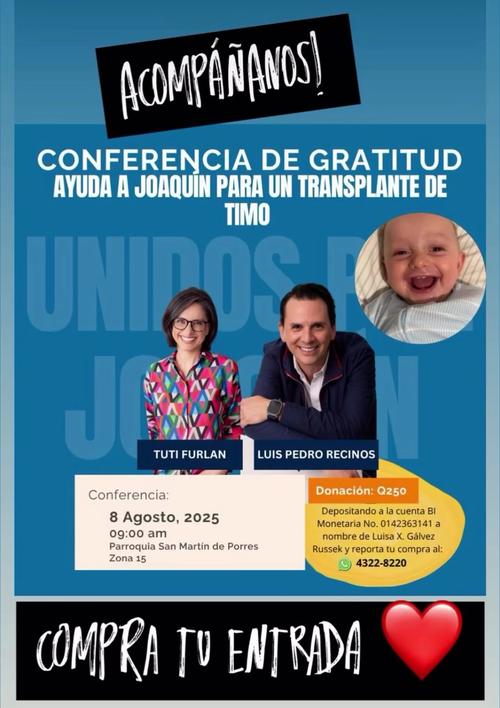 Así puedes apoyar a Joaquín para su trasplante de timo: no te pierdas la “Conferencia de gratitud”, con Tuti Furlán y Luis Pedro Recinos. @soy_502 pic.twitter.com/OojEH1i28l
