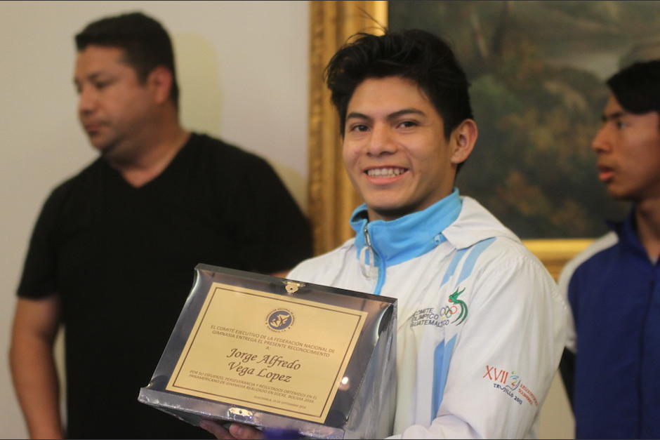 Después de haber ganado dos medallas de oro y una de bronce en el Campeonato Panamericano de Especialidades de Gimnasia Artística que se disputó en Sucre, Bolivia; Jorge Alfredo Vega López, regresó a Guatemala donde recibió un reconocimiento de parte de la Federación Nacional de Gimnasia.