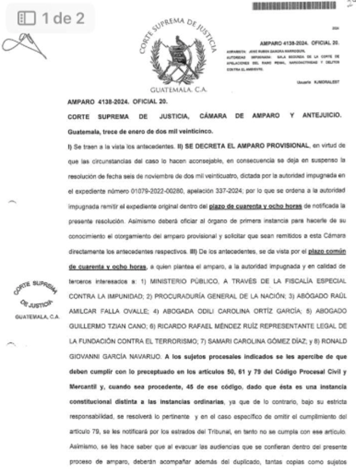 La Corte Suprema de Justicia amparó de manera provisional al periodista José Rubén Zamora.