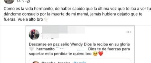 "Descanse en paz seño Wendy, Dios la reciba en su gloria. Hermanito, Dios te dé fuerzas para soportar esta pérdida, te quiero bro", escribió.