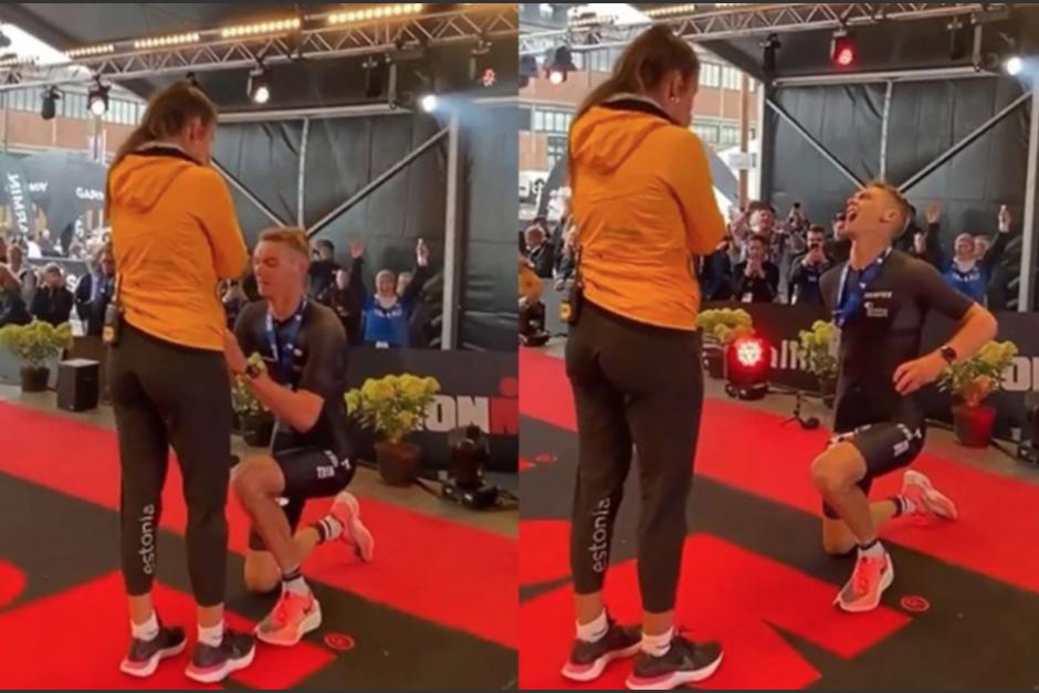 Todo ocurrió cuando terminó su competición en el Ironman de Estonia, donde ganó el sexto lugar, para luego intentar darle el anillo a su pareja.