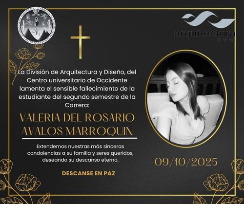 La División de Arquitectura y Diseño del Centro Universitario de Occidente lamentó el fallecimiento de la estudiante.