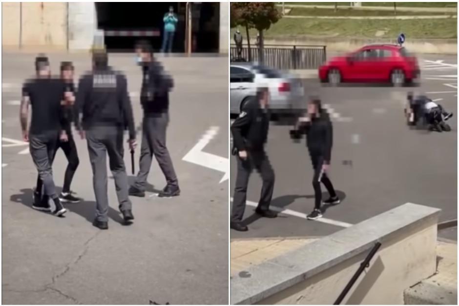 Un video, que se difundió en las redes sociales, muestra a dos hombres insultando y golpeando a dos guardias de seguridad del Hospital Clínico de Salamanca, en la región de Castilla y León. Los vigilantes apenas reaccionan, quizás ante el temor de recibir una denuncia por agresión, algo común en este tipo de episodios.